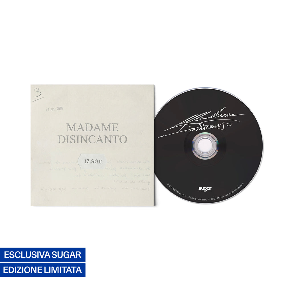 “Disincanto” è il nuovo e terzo album di Madame, in uscita il 17 aprile 2026 per Sugar Music e acquistabile in vinile con poster e CD. Questa edizione in CD autografato e cover alternativa è disponibile in esclusiva su shop.sugarmusic.com.